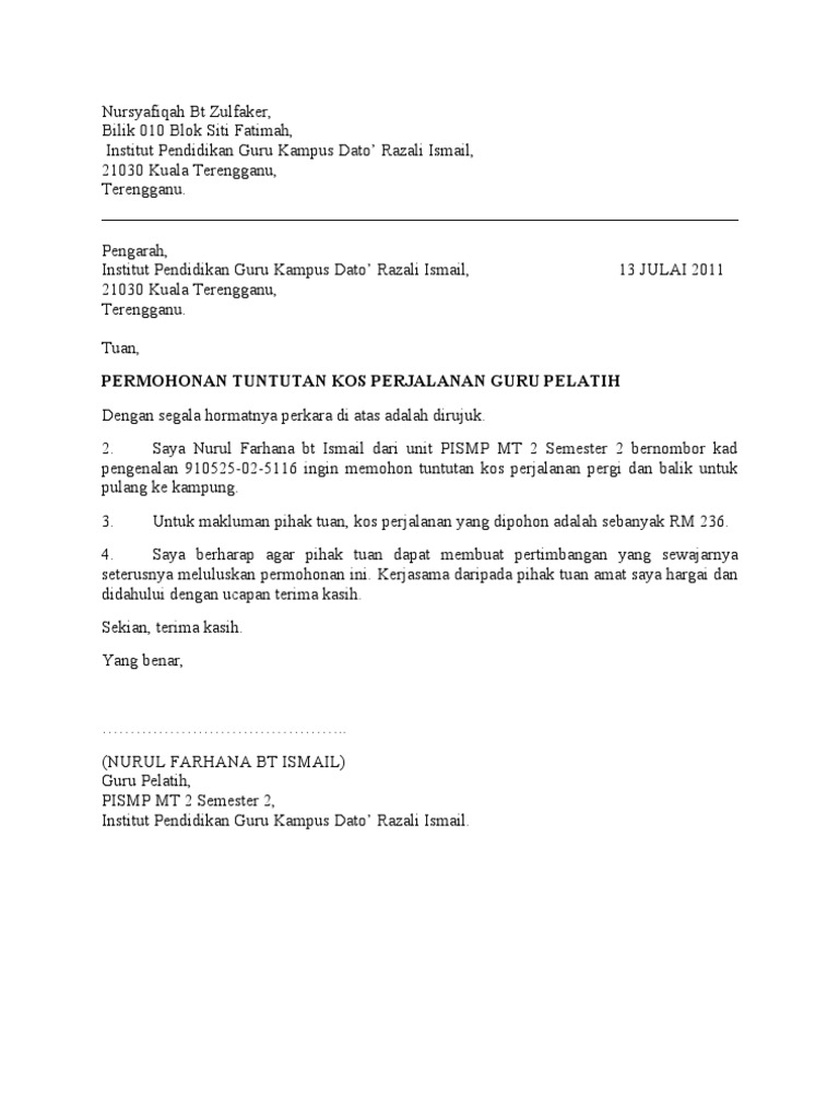 Contoh surat rayuan bayaran ansuran ptptn. Kenyataan tuntutan Elaun Perjalanan Kenderaan tuan punya kenderaan itu hendaklah diperolehi dan disematkan bersama tuntutan pegawai yang meminjam kenderaan tersebut. Tuntutan elaun perjalanan yang salah.