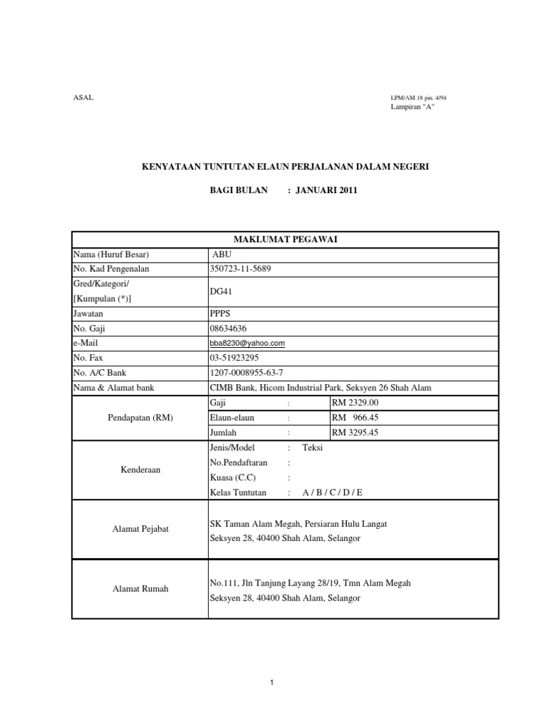 B tuntutan ini dibuat mengikut kadar dan syarat seperti yang dinyatakan di bawah peraturan bertugas rasmi yang berkuat kuasa danatau. Contoh surat rayuan tuntutan elaun pertukaran download kumpulan gambar. Kadar tuntutan unit akaun jpn.